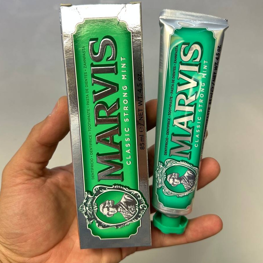 با خرید خمیر دندان Marvis Classic Strong Mint، طعم کلاسیک و قدرت نعناع 💪🌿 را به روتین روزانه خود اضافه کنید.