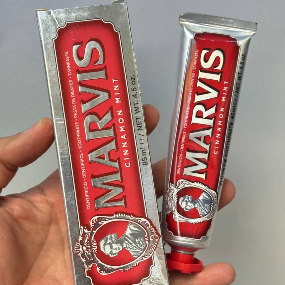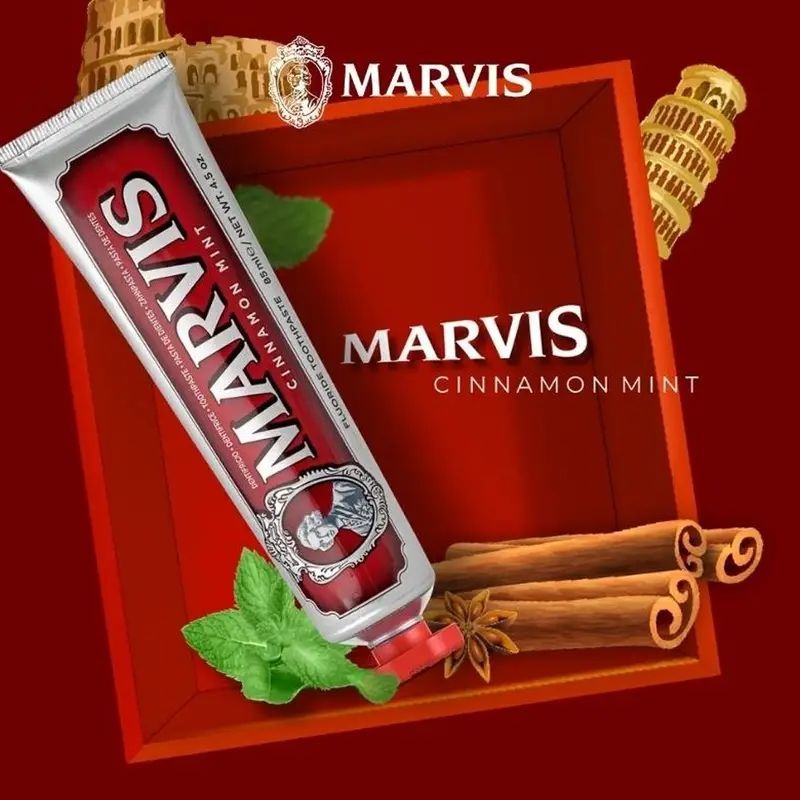 با خرید خمیر دندان Marvis Cinnamon Mint، طعم خاص دارچین و نعناع 🌿🍂 و حس تازگی طولانی را به روتین روزانه خود اضافه کنید.